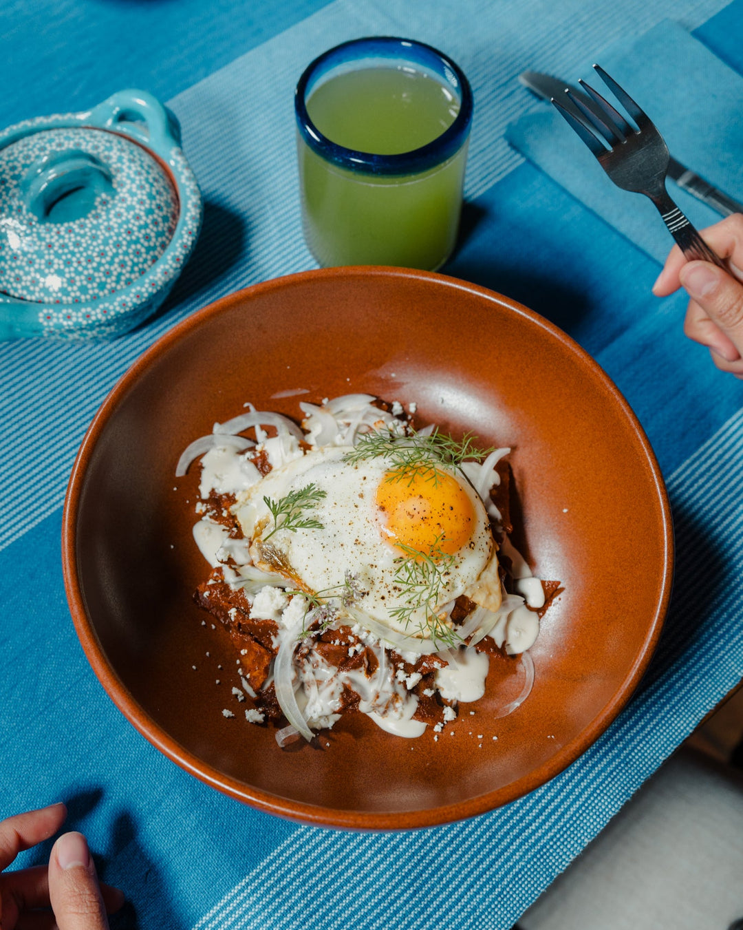 Chilaquiles are a savory, hearty breakfast and a staple of Mexican cuisine. Ours features crispy fried tortillas simmered in rich Mole Rojo and topped with a perfectly fried egg.